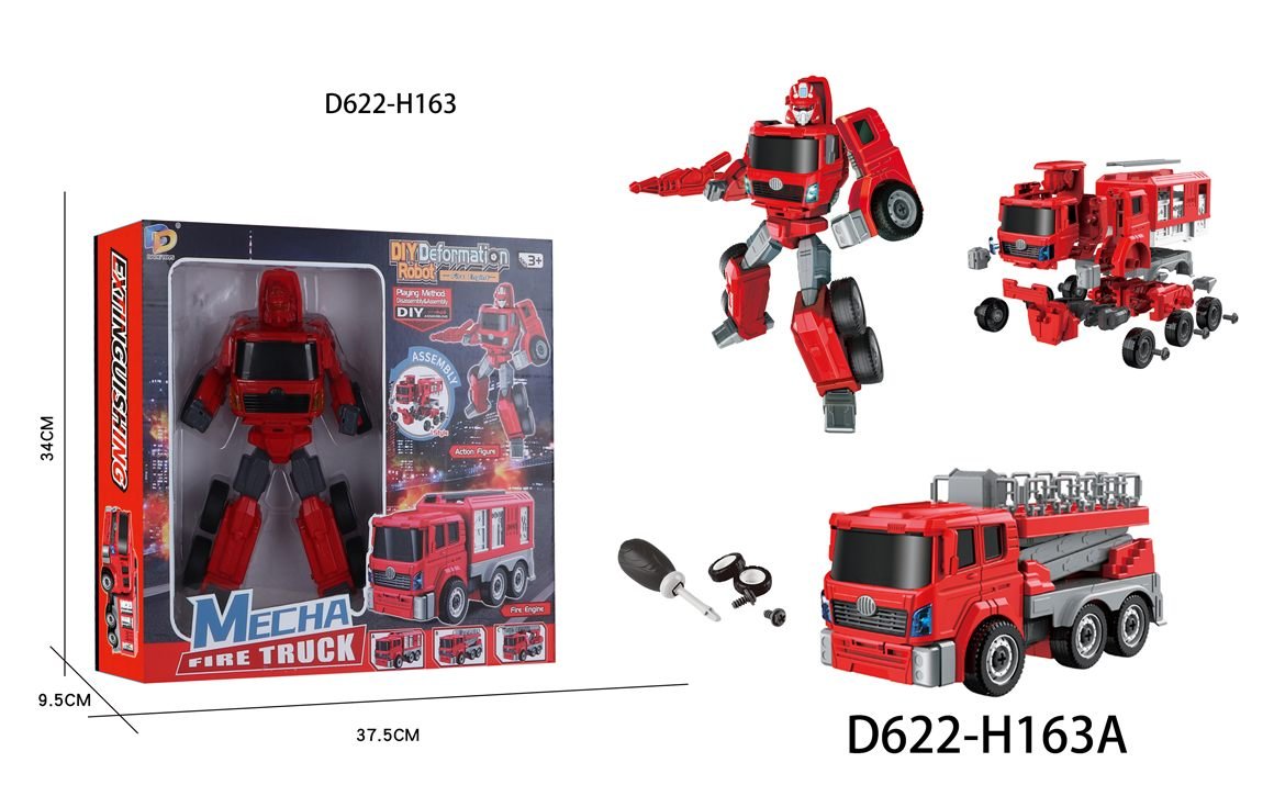 The multifunctional fire truck and robot 2-in-1 is perfect for firefighters. On the front, you have a button for sound effects and lights. With the included screwdriver, you can completely disassemble the mech and rebuild it into a robot or fire truck!